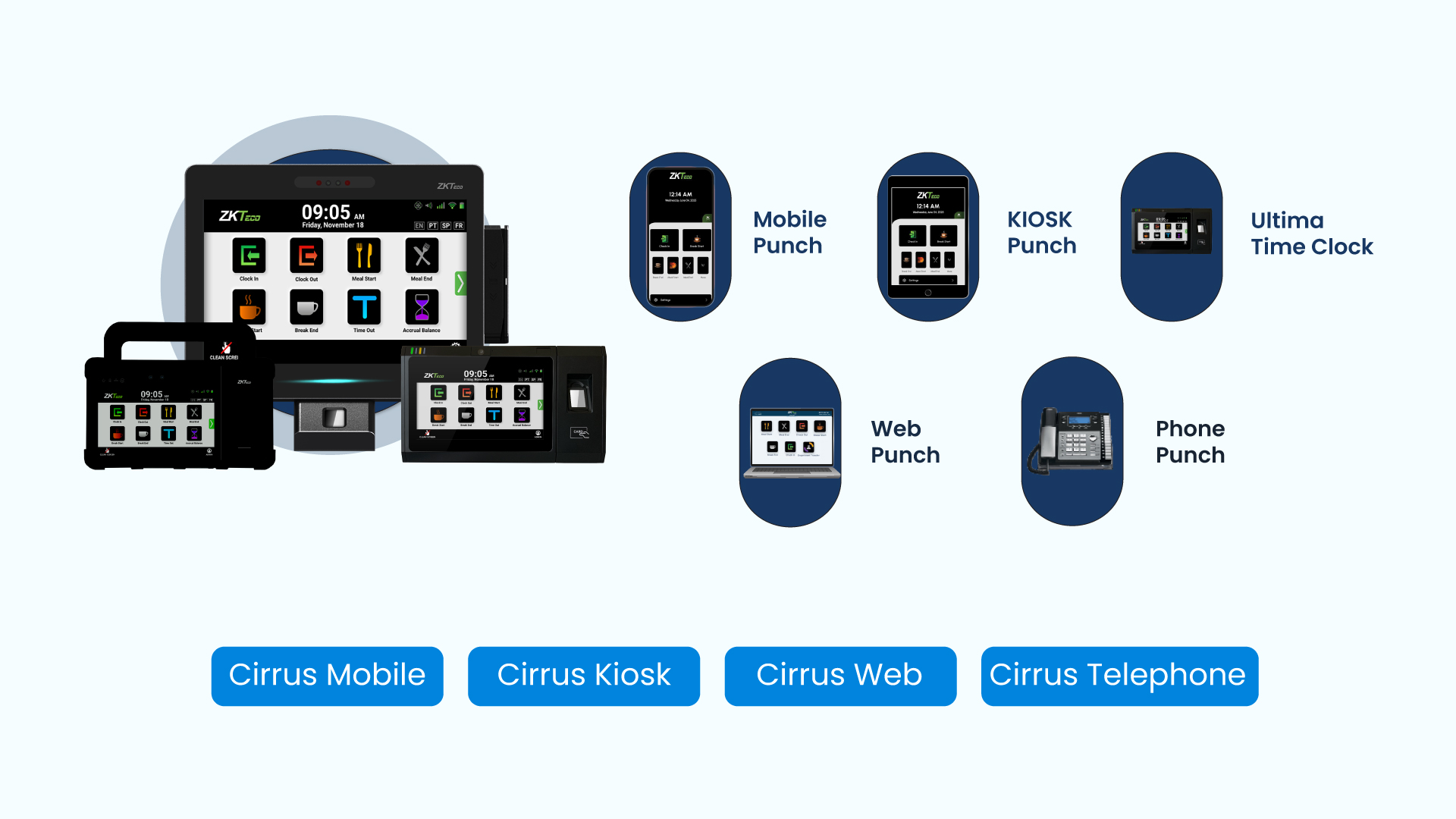 ZKTeco WFM provides data collection solutions with Ultima hardware, the TimeTrack App and integration tools like Platform SDK, TimeTrack API and Cirrus Connect. Our modular approach delivers cost-effective, customizable solutions for software partners and Workday customers.